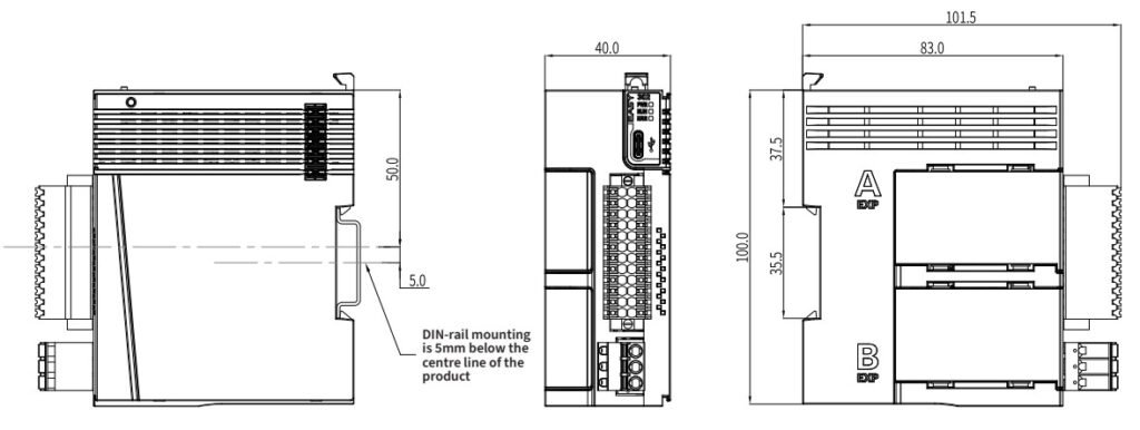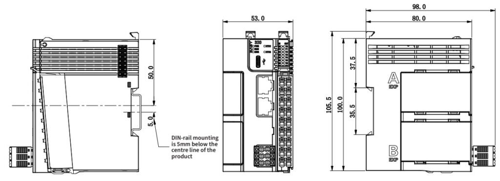 Each controller model can be expanded locally with GL20 series input and output modules attached to the side of the controller: