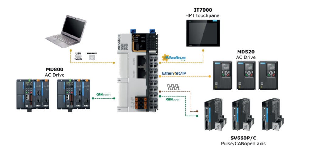 | CAN communication | 1 (requires expansion card), supports CANlink/CANopen up to 62 slave devices |