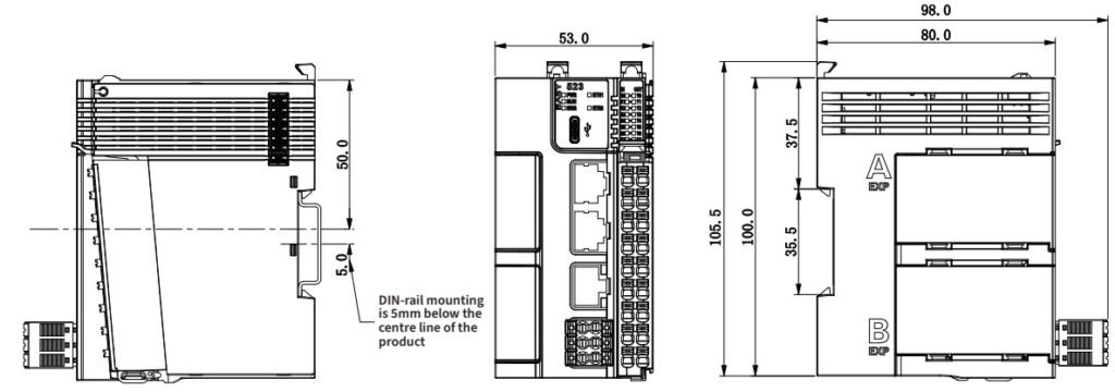 | Expansion Slot for GE20 | 2 (extension of communication, digital I/O, analog I/O, TF card, RTC) |