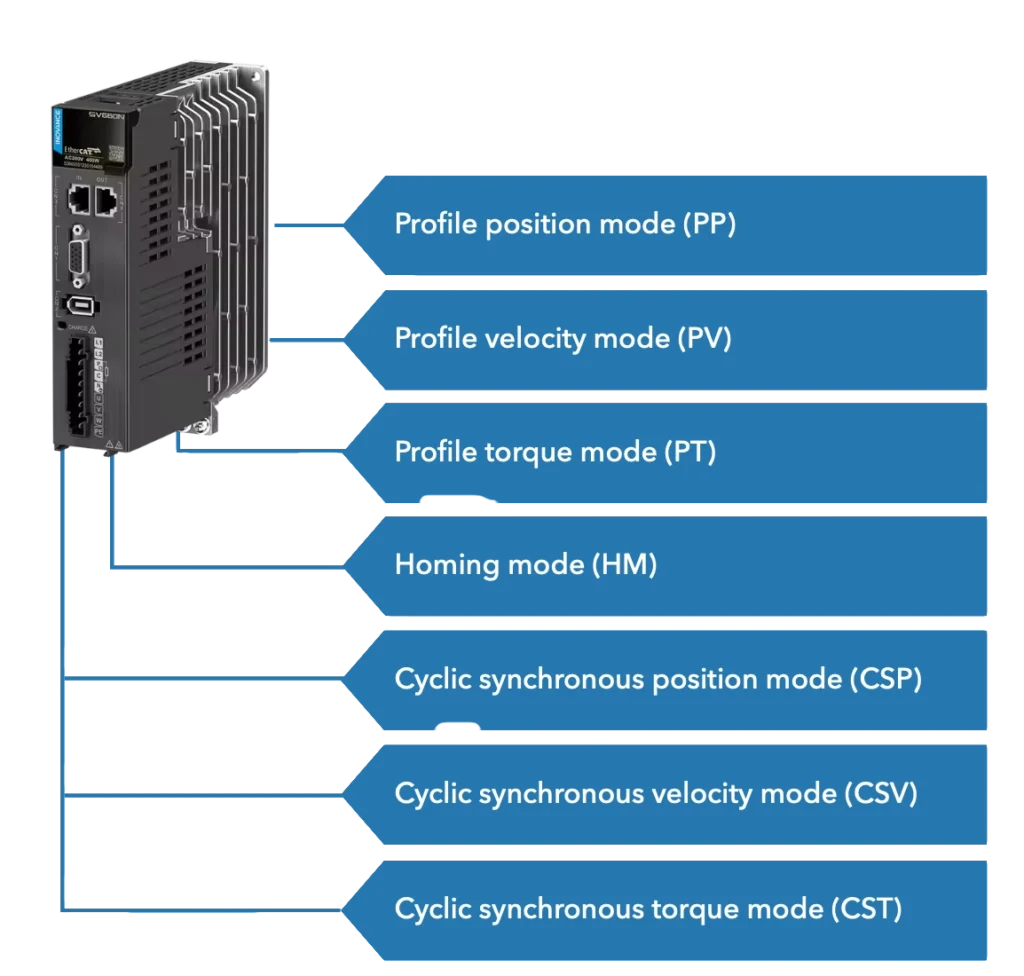 The SV660N series uses a high-performance processor for fast communication, achieving a cycle time of 125 μs for all EtherCAT operating modes.